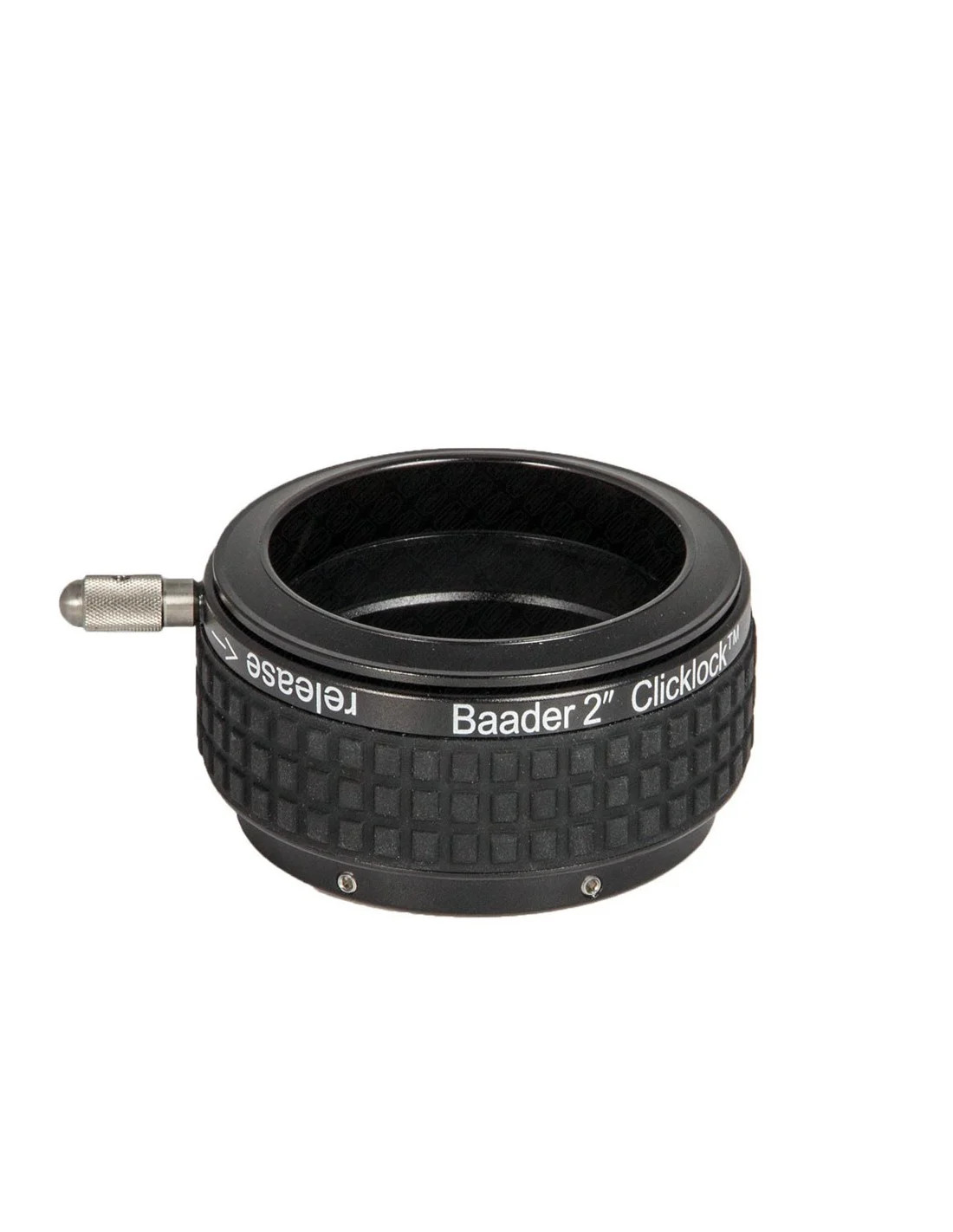 Il Baader ClickLock (1¼" / 2") è un morsetto portaoculari di elevata precisione e notevole robustezza strutturale, privo di viti di serraggio. Oculari, camere CCD e accessori analoghi inseriti vengono mantenuti in posizione in modo sicuro, bloccati contro la rotazione e senza subire alcun danneggiamento superficiale. Con una breve rotazione di circa 20°, l’accessorio viene serrato saldamente. Non è più necessario agire su piccole viti di fissaggio: è sufficiente ruotare di pochi gradi la parte superiore del morsetto per ottenere un bloccaggio stabile e affidabile, operazione eseguibile senza difficoltà anche indossando guanti.
