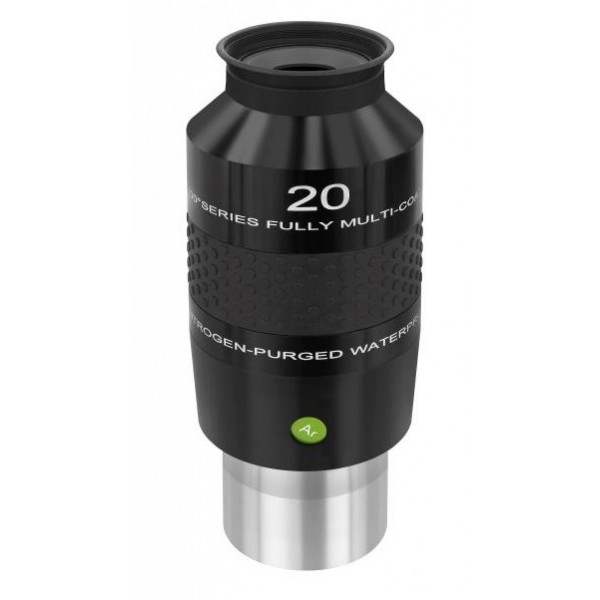 Oculare ultra grandangolare da 20mm, campo apparente 100° e barilotto diametro 2 pollici, indicato per osservazioni di oggetti del cielo profondo molto estesi che richiedono il massimo campo disponibile.