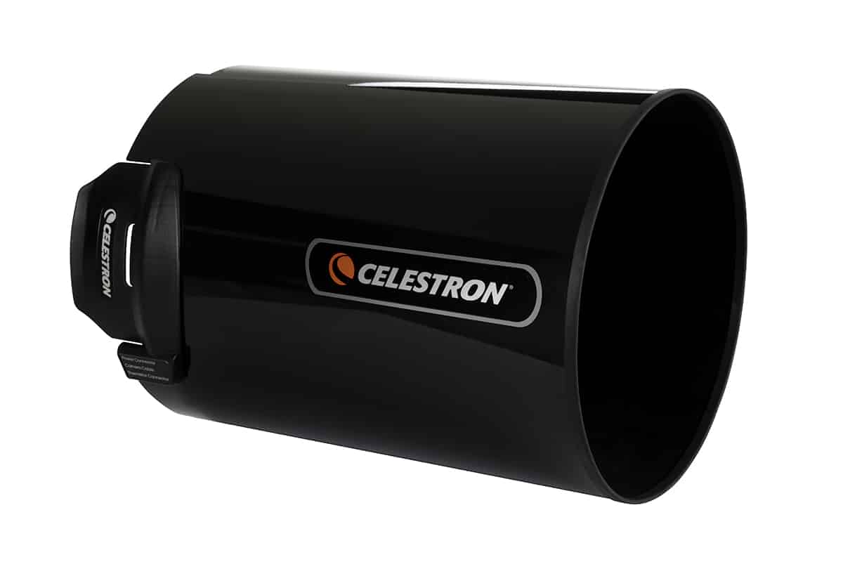 Paraluce anticondensa in alluminio con coperchio per tutti i tubi Celestron Schmidt-Cassegrain da 6″ a 14" di diametro. Il paraluce anticondensa riduce il raffreddamento radiativo della lente correttrice Schmidt, mantenendola al di sotto del punto di rugiada più a lungo e prevenendo quindi la formazione di condensa sulla lente.