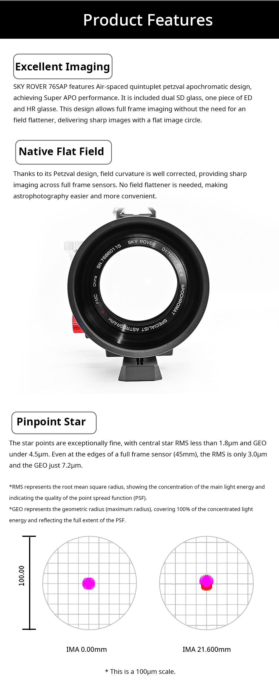 Non ha bisogno di alcun spianatore con stelle puntiformi sul tutto il campo della camera, fino al formato full frame